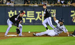 [OSEN=잠실, 조은정 기자]10일 오후 서울 잠실구장에서 ‘2025 신한 SOL Bank KBO리그’ 두산 베어스와 LG 트윈스의 경기가 열렸다.홈팀 두산은 콜어빈, 방문팀 LG는 손주영을 선발로 내세웠다.4회말 1사 1루에서 두산 이유찬 타석 때 오