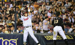 [OSEN=잠실, 조은정 기자]11일 오후 서울 잠실구장에서 ‘2025 신한 SOL Bank KBO리그’ LG 트윈스와 KT 위즈의 경기가 열렸다.홈팀 LG는 치리노스, 방문팀 KT는 헤이수스를 선발로 내세웠다.3회말 LG 선두타자 신민재 3루타 세리머니를 하