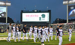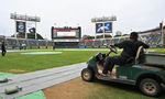 [OSEN=대전, 이대선 기자] 12일 오후 6시 30분 대전 한화생명 볼파크에서 열릴 예정이던 한화 이글스와 키움 히어로즈의 경기가 우천으로 취소됐다. 내야에 대형 방수포를 덮으며 경기를 준비했지만, 빗줄기가 멈추지 않았고 밤까