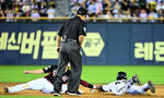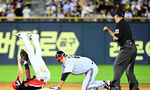 [OSEN=잠실, 지형준 기자] 13일 오후 서울 잠실구장에서 ‘2025 신한 SOL Bank KBO리그’ LG 트윈스와 KIA 타이거즈의 경기가 열렸다.LG는 임찬규, KIA는 이의리가 선발로 나섰다.7회말 2사 1루에서 LG 최승민이 KIA 박찬호에 태그아웃 당하