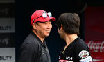 [OSEN=잠실, 지형준 기자] 13일 오후 서울 잠실구장에서 ‘2025 신한 SOL Bank KBO리그’ LG 트윈스와 KIA 타이거즈의 경기가 열렸다.LG는 임찬규, KIA는 이의리가 선발로 나섰다.경기에 앞서 KIA 이범호 감독이 박찬호와 이야기를 나누고