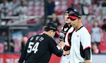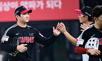 [OSEN=수원, 최규한 기자] 16일 수원 KT위즈파크에서 ‘2025 신한 SOL Bank KBO리그’ KT 위즈와 LG 트윈스의 경기가 열렸다.이날 경기는 혈투 끝에 방문팀 LG가 10-6 승리를 거뒀다.경기를 마치고 승리한 LG 오지환과 염경엽 감독이 인사를
