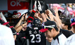 [OSEN=수원, 최규한 기자] 16일 수원 KT위즈파크에서 ‘2025 신한 SOL Bank KBO리그’ KT 위즈와 LG 트윈스의 경기가 열렸다.홈팀 KT는 헤이수스, 방문팀 LG는 손주영을 선발로 내세웠다.3회말 수비 때 LG 좌익수 구본혁이 동료들에게 제스