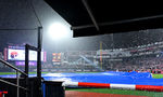[OSEN=수원, 최규한 기자] 16일 수원 KT위즈파크에서 ‘2025 신한 SOL Bank KBO리그’ KT 위즈와 LG 트윈스의 경기가 열렸다.홈팀 KT는 헤이수스, 방문팀 LG는 손주영을 선발로 내세웠다.3회말 2사 1, 2루 상황 장대비가 내리자 심판진이 우