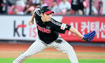 [OSEN=수원, 최규한 기자] 16일 수원 KT위즈파크에서 ‘2025 신한 SOL Bank KBO리그’ KT 위즈와 LG 트윈스의 경기가 열렸다.홈팀 KT는 헤이수스, 방문팀 LG는 손주영을 선발로 내세웠다.8회말 마운드에 오른 LG 박명근이 힘차게 공을 뿌리