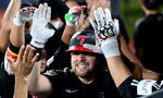 [OSEN=수원, 최규한 기자] 16일 수원 KT위즈파크에서 ‘2025 신한 SOL Bank KBO리그’ KT 위즈와 LG 트윈스의 경기가 열렸다.홈팀 KT는 헤이수스, 방문팀 LG는 손주영을 선발로 내세웠다.8회말 1사 1루 상황 KT 황재균이 안타를 날리고 있다.