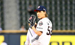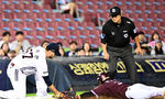 [OSEN=잠실, 지형준 기자] 17일 오후 서울 잠실구장에서 ‘2025 신한 SOL Bank KBO리그’ 두산 베어스와 키움 히어로즈의 경기가 열렸다.두산은 콜어빈, 키움은 매르세데스가 선발로 나섰다.1회 키움 알칸타라가 정현우에게 그립을 설