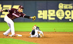 [OSEN=잠실, 지형준 기자] 17일 오후 서울 잠실구장에서 ‘2025 신한 SOL Bank KBO리그’ 두산 베어스와 키움 히어로즈의 경기가 열렸다.두산은 콜어빈, 키움은 매르세데스가 선발로 나섰다.3회말 1사 1루에서 두산 박준순이 2루 도루에