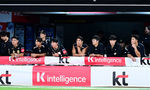 [OSEN=수원, 최규한 기자] 18일 수원 KT위즈파크에서 ‘2025 신한 SOL Bank KBO리그’ KT 위즈와 LG 트윈스의 더블헤더 2차전이 열렸다.홈팀 KT는 패트릭 머피, 방문팀 LG는 송승기를 선발로 내세웠다.8회초 실점에 KT 더그아웃 표정이 어둡