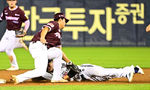 [OSEN=잠실, 지형준 기자] 18일 오후 서울 잠실구장에서 ‘2025 신한 SOL Bank KBO리그’ 두산 베어스와 키움 히어로즈의 경기가 열렸다.두산은 잭로그, 키움은 하영민이 선발로 나섰다.6회말 2사 1루에서 두산 오명진이 키움 어준서에
