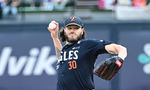 [OSEN=수원, 최규한 기자] 20일 수원 KT위즈파크에서 ‘2025 신한 SOL Bank KBO리그’ KT 위즈와 한화 이글스의 경기가 열렸다.홈팀 KT는 고영표, 방문팀 한화는 코디 폰세를 선발로 내세웠다.1회말 한화 선발 코디 폰세가 힘차게 공을 뿌