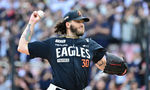 [OSEN=수원, 최규한 기자] 20일 수원 KT위즈파크에서 ‘2025 신한 SOL Bank KBO리그’ KT 위즈와 한화 이글스의 경기가 열렸다.홈팀 KT는 고영표, 방문팀 한화는 코디 폰세를 선발로 내세웠다.1회말 한화 선발 코디 폰세가 힘차게 공을 뿌