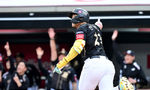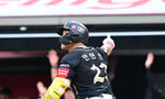 [OSEN=수원, 최규한 기자] 20일 수원 KT위즈파크에서 ‘2025 신한 SOL Bank KBO리그’ KT 위즈와 한화 이글스의 경기가 열렸다.홈팀 KT는 고영표, 방문팀 한화는 코디 폰세를 선발로 내세웠다.1회말 무사 1, 2루 상황 KT 안현민이 선제 좌월