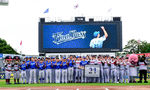 [OSEN=잠실, 지형준 기자] 20일 서울 잠실구장에서 ‘2025 신한 SOL Bank KBO리그’ LG 트윈스와 삼성 라이온즈의 경기가 열렸다.LG는 외국인 투수 톨허스트를, 삼성은 원태인을 선발투수로 내세웠다.경기에 앞서 삼성 오승환 은퇴투어
