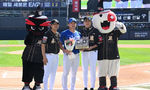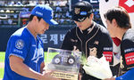 [OSEN=수원, 조은정 기자]21일 수원 KT위즈파크에서 ‘2025 신한 SOL Bank KBO리그’ KT 위즈와 삼성 라이온즈의 경기에 앞서 삼성 오승환의 은퇴 투어 행사가 진행됐다.삼성 오승환이 KT 우규민에게 은퇴 선물을 받고 있다. 2025.09.2