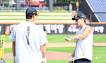[OSEN=대전, 민경훈 기자] 27일 오후 대전 한화생명볼파크에서 2025 신한 SOL Bank KBO리그 한화 이글스와 LG 트윈스의 경기가 열린다한화는 문동주, LG는 톨허스트를 선발 투수로 내세운다.경기 전 한화 채은성이 노시환의 엉덩이를