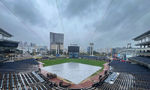 [OSEN=수원, 이후광 기자] 창원과 더불어 수원도 간헐적으로 비가 내리며 내야에 방수포가 덮여있다. 예보 상 경기 개시는 가능할 것으로 보이지만, 창원(NC-SSG전)날씨로인해 이날 승리하더라고 순위 확정이 불가능할 것으로 보인
