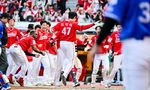 [OSEN=인천, 박준형 기자] SSG 랜더스가 9회말 김성욱의 극적인 끝내기홈런을 앞세워 1차전 패배를 설욕했다.프로야구 SSG 랜더스는 11일 인천SSG랜더스필드에서 열린 2025 신한 SOL KBO 준플레이오프(5전 3선승제) 2차전에서 4-3 끝내기
