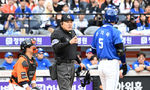 [OSEN=대전, 이대선 기자] 18일 오후 대전 한화생명볼파크에서 2025 신한 SOL Bank KBO리그 포스트시즌 플레이오프 1차전 한화 이글스와 삼성 라이온즈의 경기가 열렸다.한화는 폰세, 삼성은 가라비토를 선발 투수로 내세웠다.3회초 무