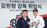 [OSEN=잠실, 이대선 기자] 23일 오후 서울 잠실야구장에서 두산 베어스 김원형 감독 취임식이 열렸다.계약 규모는 2+1년 최대 20억 원(계약금 5억, 연봉 각 5억 원)이다.김 감독은 23일 취임식을 거쳐 29일부터 진행되는 일본 미야자