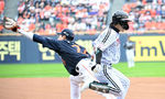 [OSEN=잠실, 지형준 기자] 26일 오후 서울 잠실야구장에서 2025 신한 SOL Bank KBO리그 포스트시즌 한국시리즈 1차전 LG 트윈스와 한화 이글스의 경기가 열렸다.LG는 앤더스 톨허스트, 한화는 문동주를 선발 투수로 내세웠다.1회말 1사 1,2