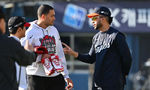 [OSEN=잠실, 이대선 기자] 27일 오후 서울 잠실야구장에서 2025 신한 SOL Bank KBO리그 포스트시즌 한국시리즈 1차전 LG 트윈스와 한화 이글스의 경기가 열렸다.LG는 임찬규, 한화는 류현진을 선발 투수로 내세웠다.경기에 앞서 LG 김진