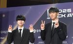 [OSEN=상암, 고용준 기자] 19일 오후 서울 상암 CJENM 멀티스튜디오에서 ‘2025 LCK 어워드’ 시상식이 열렸다.피어엑스의 젊은 피 ‘디아블’ 남대근과 ‘랩터’ 전어진이 레드 카펫에서 포토타임에 임하고 있다. /