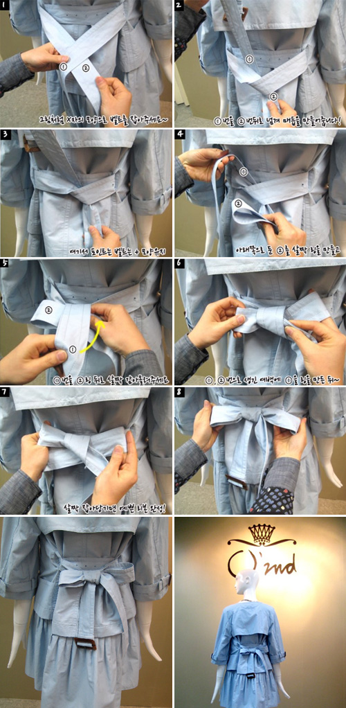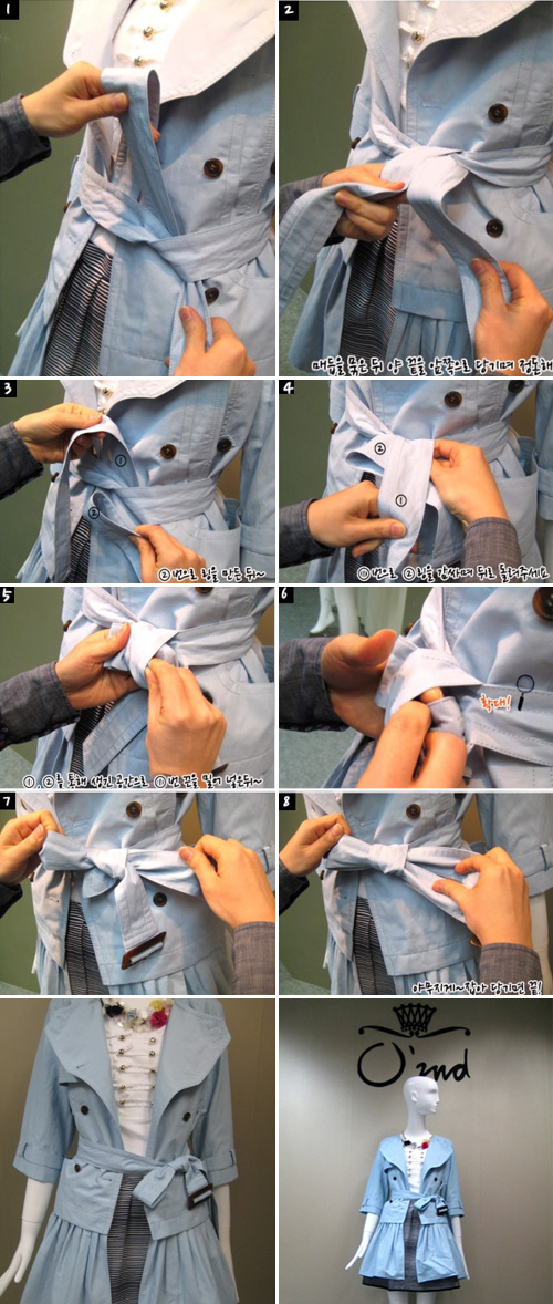 하지만 많은 여성들이 허리끈의 연출법을 잘 몰라서 어설프게 맨 경우를 많이 볼 수 있다. 심지어 주머니에 꽂고 다니거나 끈이 풀려 바닥에 끌고 다니는 모습도 비일비재하다. 이런 여성들을 위한 벨트 묶는 법을 공개한다.
