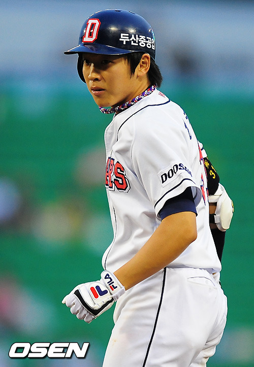 4,5회 각각 최재훈의 선제 결승타와 김현수의 우전 적시타로 2-0을 만든 뒤 6회 고영민의 좌월 솔로포까지 터지며 3-0으로 앞선 두산. 고영민의 뒤를 이은 정수빈은 볼카운트 2-2에서 상대 선발 윤성환의 공을 공략해 우중간 2루타로 연결했다. 2아웃에서 찬스를 살려낸 정수빈의 타격이었다.