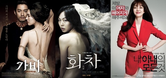지난 달 개봉한 '화차'와 '가비'는 김민희와 김소연의 아찔한 뒤태 포스터로 화제를 모았고, 5월 개봉 예정인 로맨틱코미디영화 '내 아내의 모든 것'은 도발적인 임수정의 하의실종 모습을 담아 '새로운 임수정'이란 이미지로 관심을 모았다.