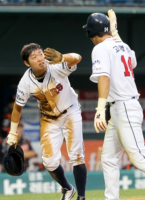 7연승을 달리던 선두팀. 여기서 기민한 슬라이딩에 이은 홈플레이트 찍기로 추가점을 올렸다. 두산 베어스 외야의 ‘현재이자 미래’ 정수빈(22)의 주루 플레이는 그야말로 ‘명품’이었다.