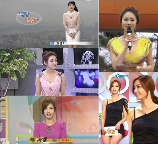 이뿐 아니라 장수연 KBS 부산방송총국 아나운서는 지난해 3월 방송된 KBS 1TV '찾아가는 음악회'에서 가슴라인이 깊게 파인 노란색 의상을 입어 많은 구설수를 낳았고, MBC 스포츠플러스의 김민아 아나운서는 지난해 11월 MBC 스포츠플러스 ‘베이스볼 투나잇 야’에서 란제리 룩을 연상케 하는 핑크색 착시 드레스로 이목을 집중시켰다.