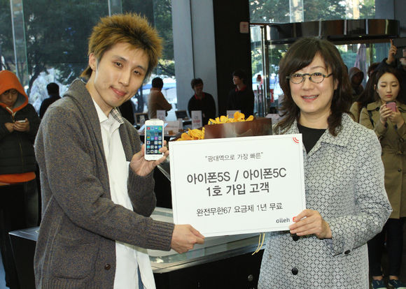 KT의 아이폰5S 1호는 전날 오후 6시 30분부터 서울 광화문의 올레스퀘어에서 줄을 선 박정준씨(32세)에게 돌아갔다. 그는 “14년 동안 KT 휴대폰을 쓰고 있었기 때문에 KT를 선택하게 됐다며"며, “2배 빠른 기변 혜택으로 1년만 지나면 다음 아이폰으로 바꿀 수 있고 지니(genie) 1년 무료 혜택 등이 마음에 들어 KT를 선택했다”고 소감을 밝혔다.