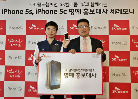 SK텔레콤 측은 SK텔레콤 T1 게임단 선수 5명을 ‘SK텔레콤 아이폰 명예 홍보대사’로 위촉하는 행사를 갖고, 선수들에게 다섯 가지 색상의 아이폰5c를 증정했다.
