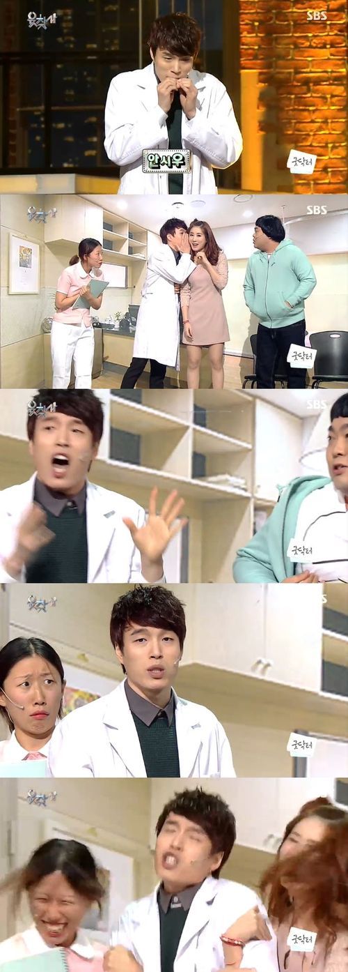 안시우는 8일 오후 방송된 SBS 예능프로그램 '웃음을 찾는 사람들'(이하 '웃찾사')에서 '굿닥터' 속 주원이 분한 의사 박시온 역할을 완벽하게 흉내냈다.