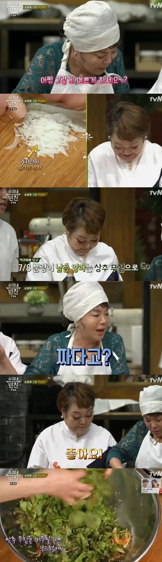 김수미는 상추무침과 싸먹기 위해 상추를 준비했고, 어느정도 완성한 상추무침을 이혜정에게 맛 보게 했다. 그러면서 짜면 안 된다고 했다. 하지만 이혜정은 "조금 짜다"고 했다. 당황한 김수미는 "선생님이 짜다고 한다"면서 꿀을 추가해 양념을 수정했다. 바로 제자들의 요리도 스톱 시키면서 당황해 웃음을 안겼다.