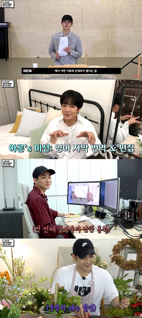 뿐만 아니라 아론은 뉴이스트 W의 콘텐츠 ‘러브 레코드 비-사이드’를 위해 ‘영어 자막 번역 및 편집하기’ 미션을 받았으며 걱정을 뒤로하고 순조롭게 미션을 수행해 스마트한 매력을 뿜어내는 등 눈길을 사로잡았다.