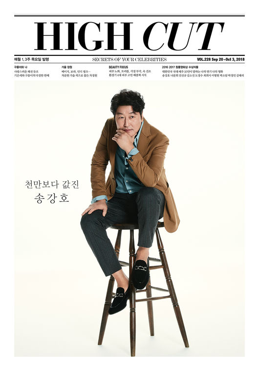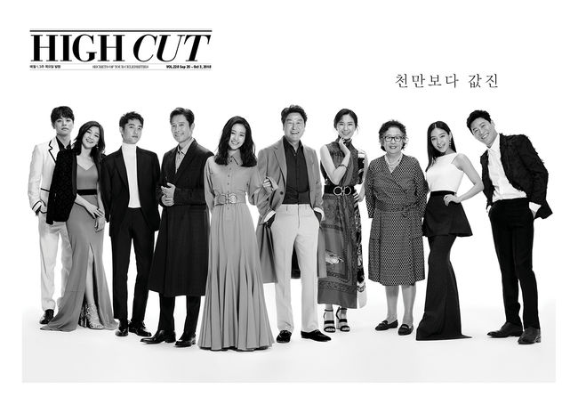 송강호 나문희 진선규 김소진 도경수 최희서 이병헌 박소담 박정민 김태리, 국가대표 배우 10인은 9월 20일 발행한 스타 스타일 매거진 ‘하이컷’ 화보를 통해 청룡영화상 수상 기념화보를 공개했다. 송강호와 이병헌은 보기만 해도 흐뭇한 브로케미를 선보였고, 나문희는 소녀처럼 수줍은 미소로 카메라 앞에 섰다. ‘미스터 션샤인’의 아련한 커플 이병헌과 김태리의 커플컷은 드라마를 보는 듯 먹먹하고 가슴 찡한 여운을 남긴다. 박정민과 박소담은 개성 넘치는 시크한 커플 케미를 선보였고, 도경수는 깊고 차분한 눈빛으로 압도적인 분위기를 자아냈다.
