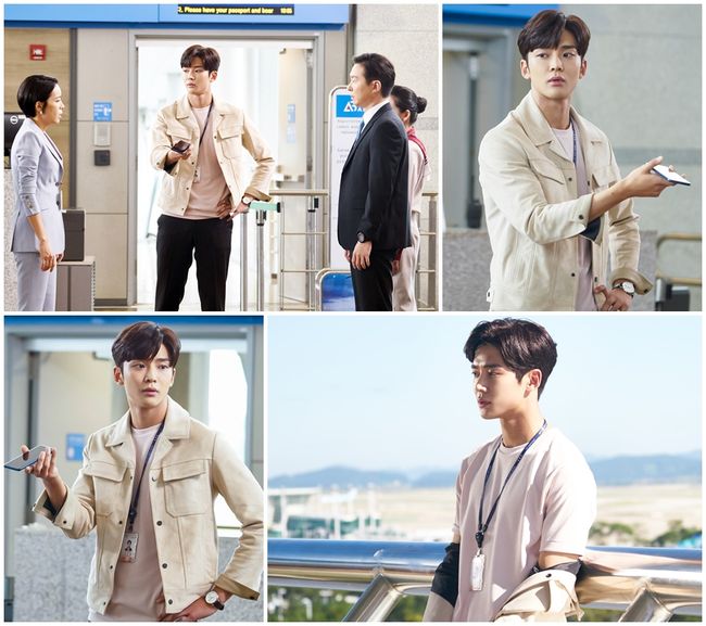 무엇보다 평소 ‘얼굴 영재’로 불리는 로운이 인천공항 내 ‘만찢남(만화를 찢고 나온 남자)’의 비주얼을 구현시킨 첫 현장이 공개돼 시선을 사로잡고 있다. 극중 항공기 운항 정보를 관리하는 계류장 운영팀의 업무 수행 중 두 항공사의 이해관계가 충돌하며 대치하게 된 상황, ‘고충처리반’으로 끼게 된 고은섭은 상황을 중재하다 급기야 영혼이 가출한 듯한 표정을 짓고, 결국 어딘가로 급하게 전화를 걸어 현장의 분위기를 생중계한다. 고래 싸움에 새우등이 터진 고은섭의 멘탈 붕괴 전말은 무엇인지 궁금증이 고조되고 있다.