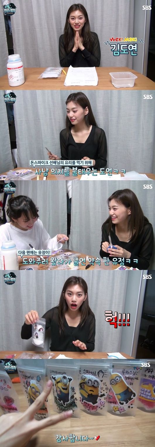 김도연이 만들 ‘주머니 에어컨’은 정글의 더운 날씨를 이겨내기 위한 핸드 메이드 아이템으로 겨울의 ‘손난로’처럼 간편하게 사용할 수 있는 것이 특징이다. 이에 김도연은 멤버들을 닮은 캐릭터 스티커까지 동원하며 제작에 정성을 들였다.
