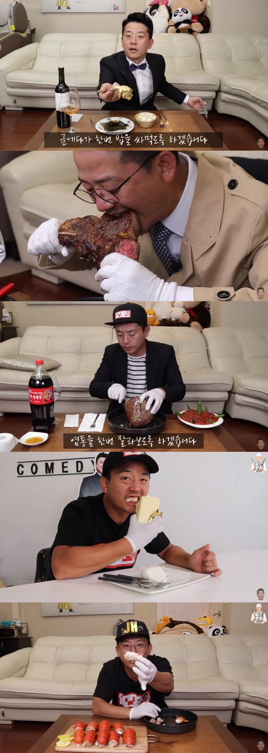 금을 얹은 금스프, 금을 한 겹 둘러 싼 금밥, 금박을 올린 금깃밥, 금코파이, 금나나, 금테이크 까지 상상을 초월하는 럭셔리한 식사로 신선한 충격을 안기며 많은 이들의 관심을 집중시켰다. 금먹방의 뜨거운 인기에 지난 8월 열렸던 ‘얼간김준호’ 팬미팅에서는 팬들과 함께 금코파이와 금나나를 시식해 보는 이색 이벤트도 진행, 팬들의 궁금증을 유쾌하게 해소해주기도 했다.