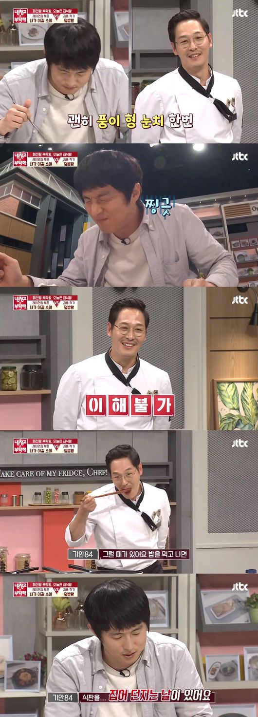 이어 냉장고의 주인인 기안84가 시식했는데 생각하지 못한 반응이 나왔다. 김풍의 요리를 보고 웃더니 “이 급식은 줄을 늦게 선거다”며 김풍의 요리를 먹은 기안84는 얼굴을 찡그리고는 고개를 들지 못하고 숟가락까지 떨어뜨렸다. 그리고는 “너무 맛없다”며 “애들이 급식 먹고 식판을 집어던지는 날이 있다. 급식반찬이 마음에 안 드는 날이다”고 혹평, 김풍을 당황하게 했다.