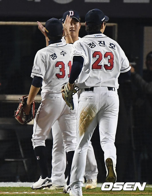 4차전에서 투런 홈런으로 승리를 이끈 정수빈은 이날 역시 공격과 수비 흠 잡을데 없는 모습으로 팀 승리의 주역이 됐다.