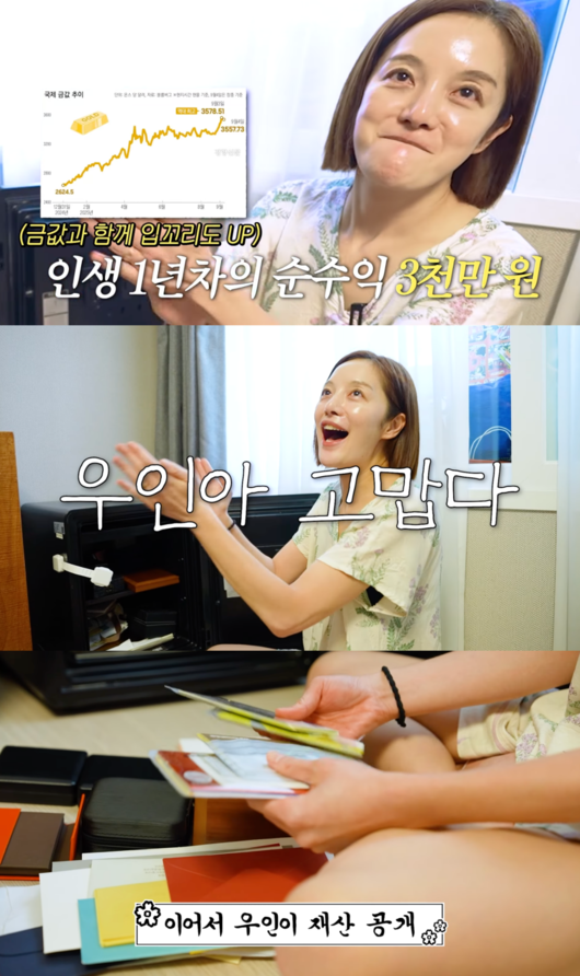 또한 “우인이 이름으로 통장도 여러 개 만들어줬다. 자산운용 S&P 계좌도 있고, 주택청약 통장도 있다. 입출금식 통장에 적금도 따로 있다”며 “엄마가 집이 없어서 서러웠던 기억이 있다. 그래서 아이만큼은 다르게 해주고 싶다. 요즘은 진짜 돈에 눈을 떴다”고 덧붙였다.