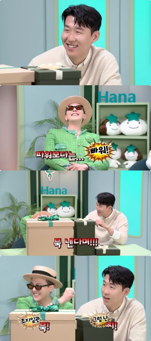 그러자 손흥민은 “형 묵 낸다며”라며 발끈해 웃음을 줬다. 지드래곤은 “져주려고 했다”라고 답했고, 손흥민과의 재대결에서도 ‘묵’을 내겠다고 선언했다. 손흥민은 “저는 그러면 찌를 내겠습니다”라고 말했고, 결국 승자는 지드래곤이었다. 손흥민은 “제가 심리전을 못하나봐요. 형이 이겼어요”라며 지드래곤에게 승리를 알렸다.