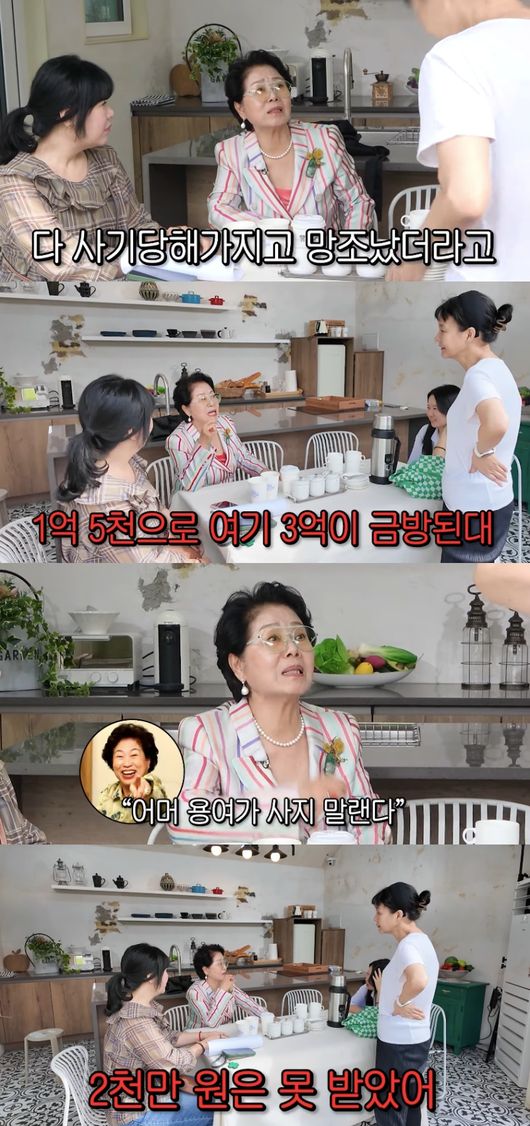 선우용여는 “밤낮으로 특집 나오지 않나. 배우들 어떻게 살고 그러는 거 그분들 보면 다 사기당해서 망조가 났더라. 내가 오죽하면 전원주 언니가 어떤 남자한테 전화가 와서 1억 5천으로 사면 그 땅이 3억이 된다더라”라고 회상했다.