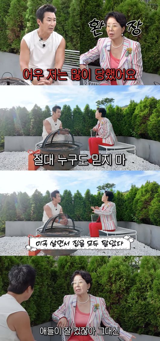 특히 선우용여는 “누가 억만금을 너한테 해준대도 믿지마”라고 말했다. 하지만 이창훈은 “저는 많이 당했다”라고 털어놨고, 선우용여는 “많이 당했으니까 이제 절대 누구도 믿지 마. 나도 일 외에는 가족밖에 몰랐다”라고 전했다.