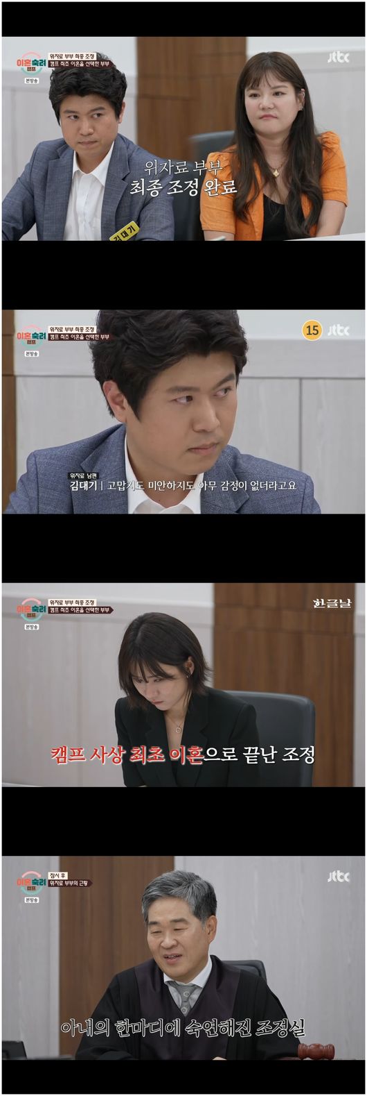 이성호 판사는 “이 캠프를 떠나면 부부로서 헤어지시는 거다”라며 두 사람을 보았다. 아내 강효정은 “끝까지 돈, 돈 치사하게 하는구나. 오만 정이 다 떨어지네요”라며 눈물 한 방울 쏟지 않았고, 남편 김대기는 “할 말이 없습니다”, “고맙지도 미안하지도 않더라. 사실 이혼을 하는데 재산도 분할을 하는데 좋겠냐. 지도 그러겠냐”라며 아버지에 대한 생각을 했다./osen_jin0310@osen.co.kr