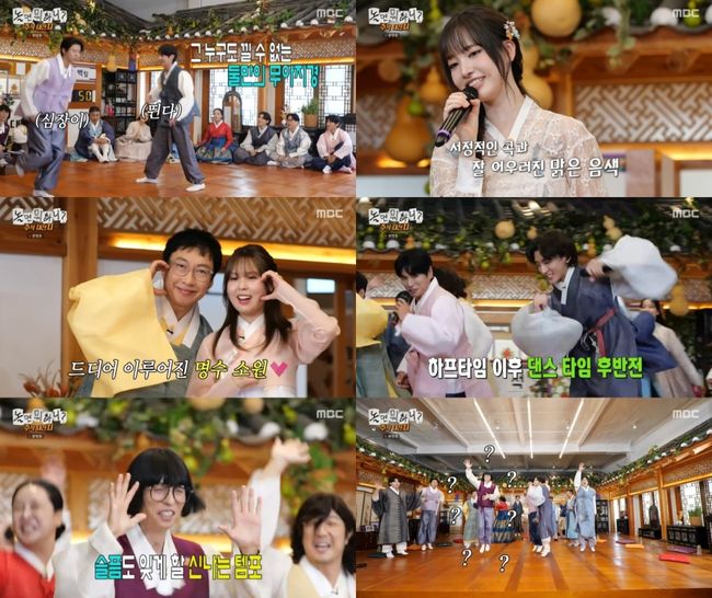이어 80년대 인기 명절선물세트를 건 청백 노래 대항전이 펼쳐졌다. 1라운드는 이용진과 딘딘이 맞붙었다. ‘디디디(김혜림)’를 선곡한 딘딘은 백팀의 응원 버프를 받고 이번에는 진짜 무대를 찢으며 박수를 받았다. ‘세월이 가면(최호섭)’으로 맞선 이용진은 섬세한 목소리와 함께 80년대식 안부를 묻는 마무리로 그 시절 감성을 완성했다.