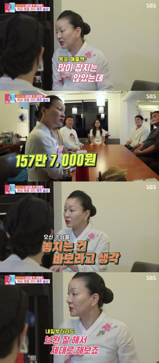 김미령은 가오픈 전 셰프, 직원들을 불러놓고 회의를 시작했다. 김미령은 하루 목표 매출이 300만 원이라고 밝혔다. 파이팅 넘치려는 찰나, 김미령은 메뉴판의 오타를 발견하고 불같이 화를 냈다. 김미령은 “인터넷을 잘 못한다. 아들한테 시켜놨는데 그걸 놓친 것 같다”라고 말했다.